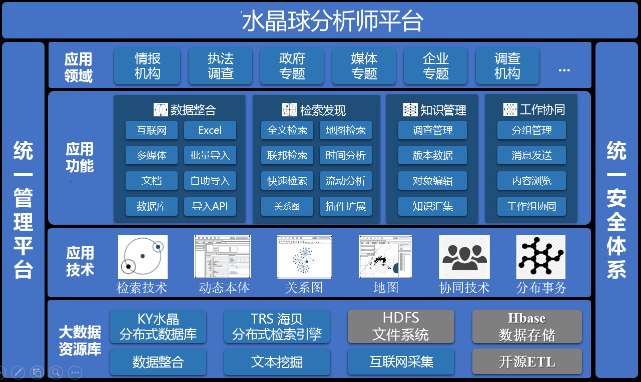 支持各類數(shù)據(jù)的融合,包括日志、電子表格、報表、郵件、文檔、圖像和視頻等結構化數(shù)據(jù)、半結構化數(shù)據(jù)和非結構化數(shù)據(jù),為分析師的分析工作提供豐富的數(shù)據(jù)支撐。