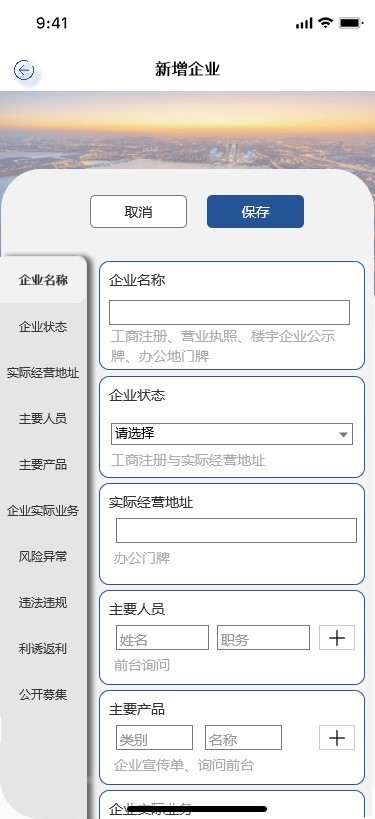 針對樓宇排查、專項行動等風(fēng)險排查工作,專業(yè)排查團隊使用智能工具,為監(jiān)管部門提供制定排查方案、完成現(xiàn)場排查、形成風(fēng)險臺賬等服務(wù),高質(zhì)高效完成現(xiàn)場風(fēng)險排查工作,全面掌握轄區(qū)風(fēng)險特征,精準(zhǔn)完成風(fēng)險化解處置。