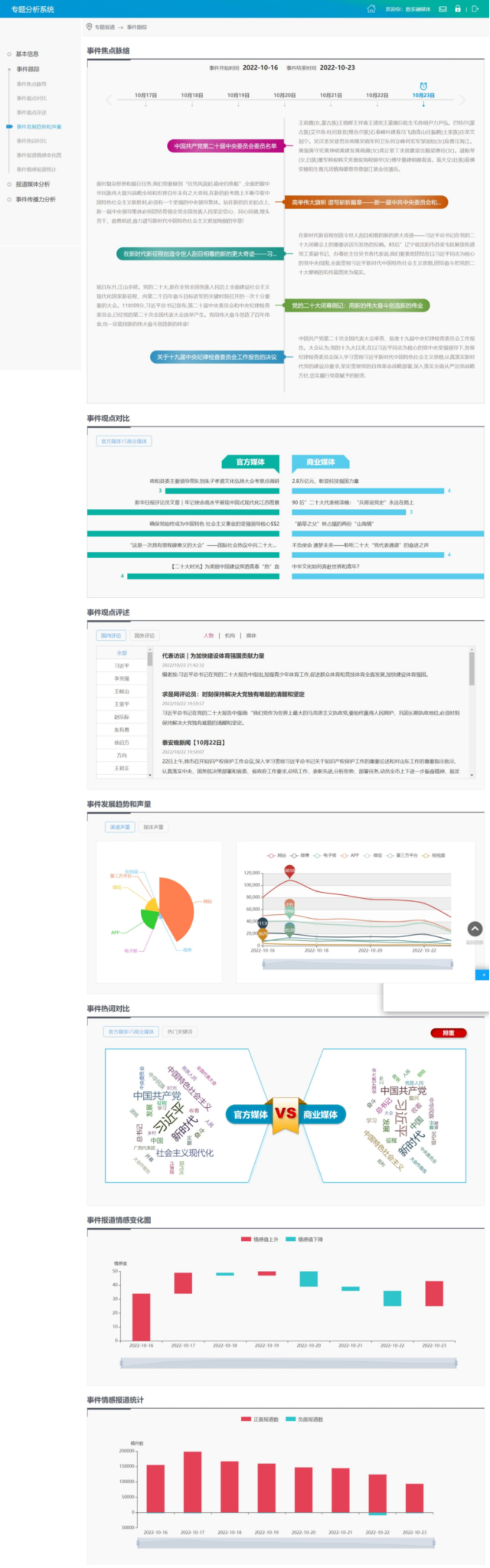 以事件或?qū)n}為中心,構(gòu)建專屬的事件專題分析服務(wù),包括事件的總覽、關(guān)鍵因子探索、話題漂移追蹤、事件溯源、傳播節(jié)點(diǎn)分析等一系列深度挖掘的內(nèi)容語義分析場景。
