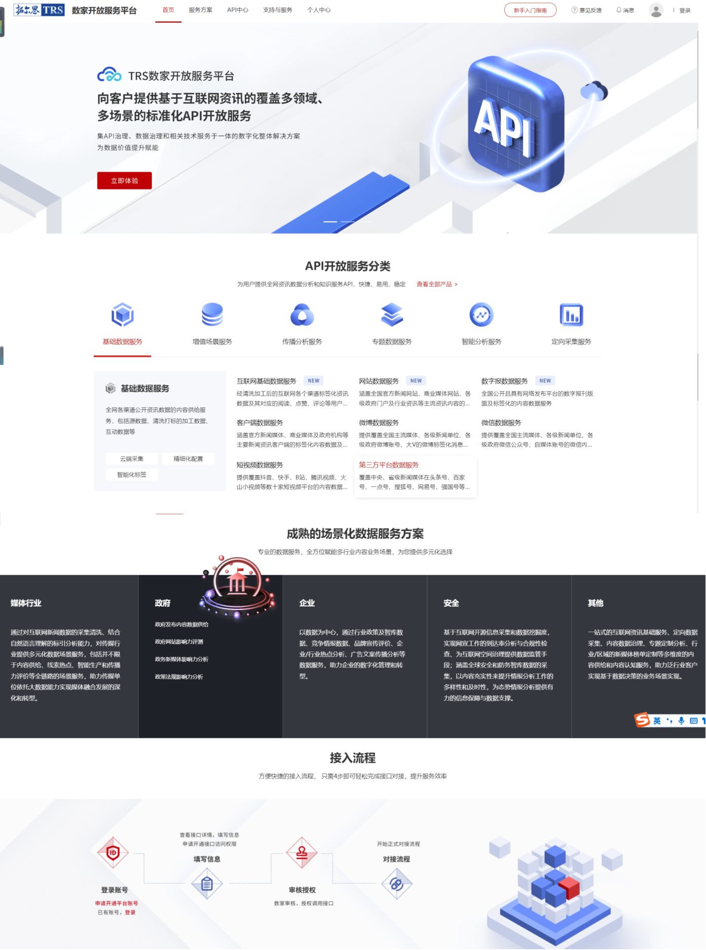 提供基于互聯(lián)網(wǎng)資訊的覆蓋多領(lǐng)域、多場景的標(biāo)準(zhǔn)化API開放服務(wù)。數(shù)家將多年積累的業(yè)務(wù)經(jīng)驗(yàn)和技術(shù)優(yōu)勢以API的方式對外開放,采用一站式接入服務(wù),提供專業(yè)的技術(shù)支持與API文檔、調(diào)試工具及示例,全程為開發(fā)加速。目前平臺(tái)提供200余種API接口,涵蓋基礎(chǔ)數(shù)據(jù)服務(wù)、增值場景服務(wù)、智能分析服務(wù)、傳播分析服務(wù)、專題分析服務(wù)、定向采集服務(wù),全方位賦能多元內(nèi)容業(yè)務(wù)場景,為用戶提供豐富的選擇。