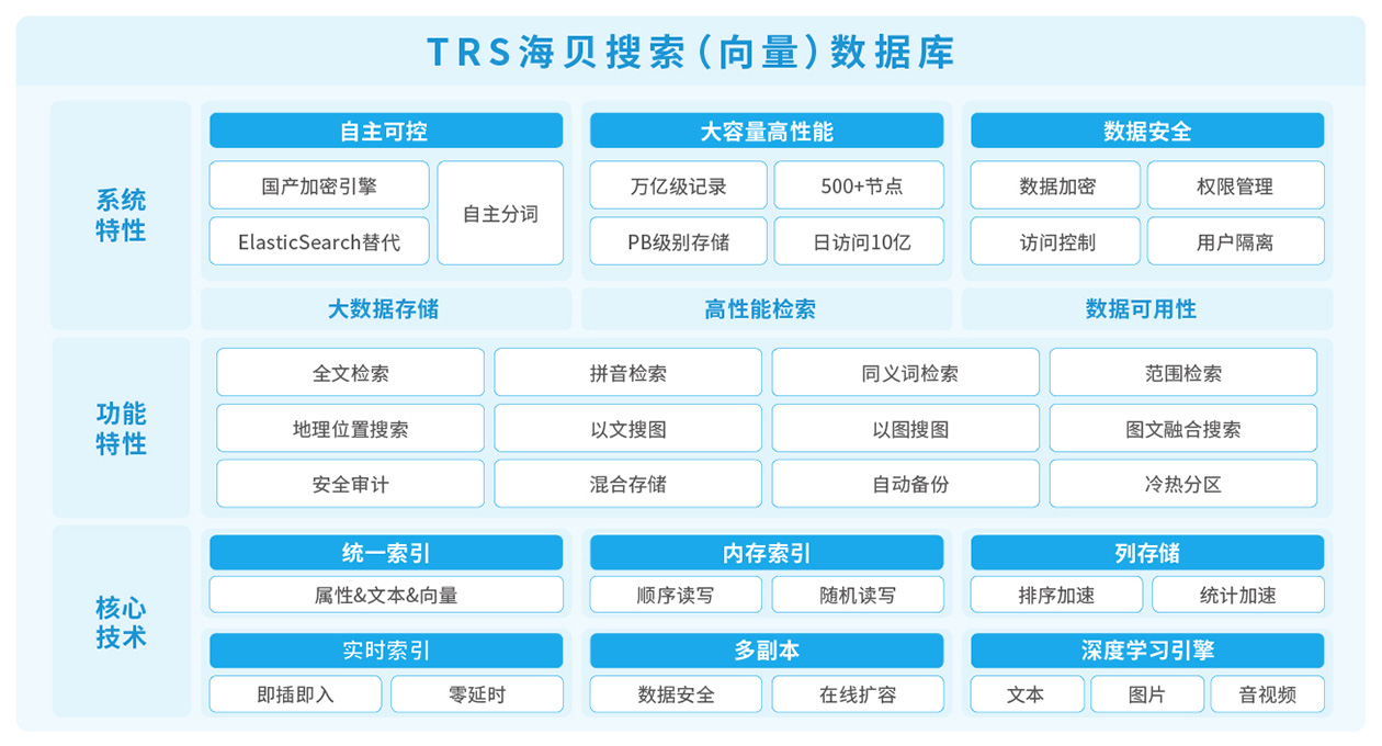 采用TRS海貝搜索(向量)數(shù)據(jù)庫和RAG解決方案,可以快速搭建智能問答系統(tǒng),利用索引和搜索算法來快速匹配問題與知識庫中的相關(guān)內(nèi)容,從而提供更準(zhǔn)確的答案。