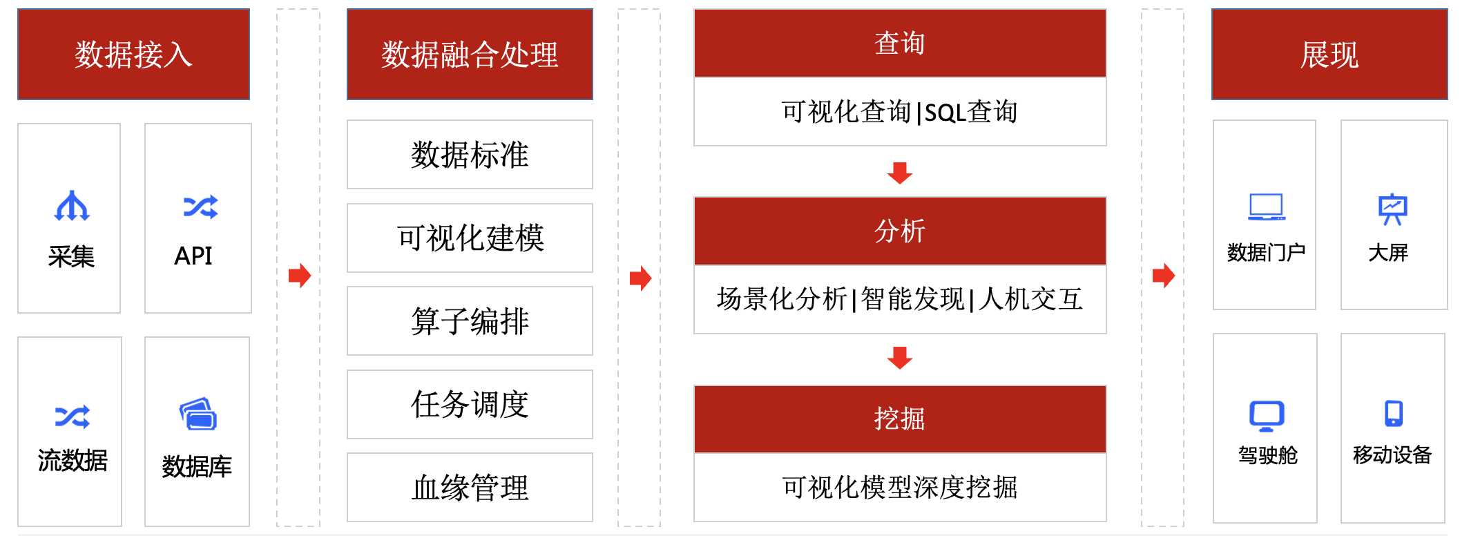 “天驕”數(shù)據(jù)中臺(tái)支持批流一體化對(duì)接入的數(shù)據(jù)和歷史數(shù)據(jù)進(jìn)行定制化處理,涵蓋結(jié)構(gòu)化和非結(jié)構(gòu)化的數(shù)據(jù)處理;除常規(guī)的數(shù)據(jù)清洗,數(shù)據(jù)打標(biāo)等傳統(tǒng)數(shù)據(jù)處理能力,還支持自然語(yǔ)言處理和圖像,音頻,視頻處理;除實(shí)時(shí)數(shù)據(jù)處理外,也支持歷史數(shù)據(jù)處理;同時(shí)還支持自定義業(yè)務(wù)模型進(jìn)行數(shù)據(jù)處理。