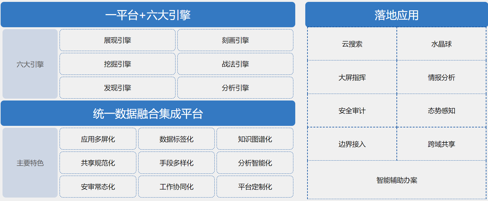 研發(fā)出云搜索系統(tǒng)、智能輔助辦案系統(tǒng)、水晶球情報分析師平臺、信息系統(tǒng)安全審計平臺、互聯(lián)網(wǎng)開源情報與輿情服務(wù)等。其中云搜索系統(tǒng)采用大數(shù)據(jù)技術(shù),實現(xiàn)海量、異構(gòu)的公安行業(yè)內(nèi)部、外部數(shù)據(jù)融合,面向人物、組織、物品、事件、地點(diǎn)等進(jìn)行深度分析、挖掘,徹底改變了公安行業(yè)海量數(shù)據(jù)無法有效利用的現(xiàn)狀,為其實戰(zhàn)業(yè)務(wù)增添了強(qiáng)勁驅(qū)動。