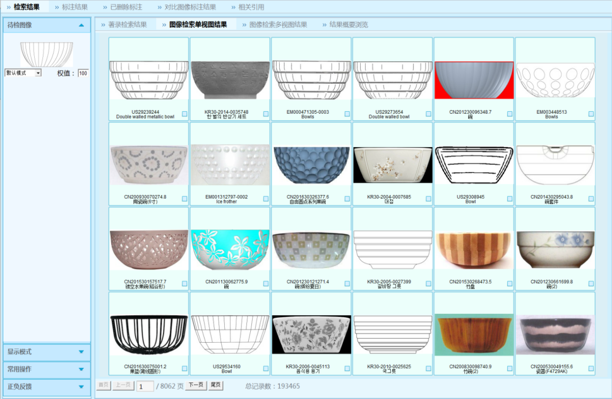 拓爾思經(jīng)過(guò)多年的研究實(shí)踐,實(shí)現(xiàn)前沿的圖形比對(duì)和圖像檢索技術(shù),通過(guò)基于圖形內(nèi)容的檢索,滿足了審查用戶對(duì)檢索效率和準(zhǔn)確率需求;結(jié)合審查員檢索報(bào)告的匯總、分析和總結(jié),形成了新的檢索模式進(jìn)而提高檢索效率;并集成同近義詞擴(kuò)展、跨語(yǔ)言擴(kuò)展等輔助技術(shù),進(jìn)一步提升了檢索體驗(yàn)。目前圖像檢索系統(tǒng)的D系統(tǒng)三期,支持包括中國(guó)、美國(guó)、日本、韓國(guó)、德國(guó)、WIPO、中國(guó)香港、中國(guó)澳門、中國(guó)臺(tái)灣等十多個(gè)國(guó)家、組織和地區(qū)的外觀設(shè)計(jì)專利數(shù)據(jù)檢索。
