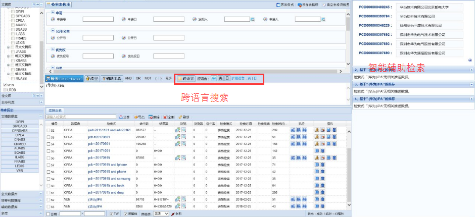 DI Inspiro提供了快捷檢索、表格檢索、號(hào)單檢索、可視化檢索、化學(xué)結(jié)構(gòu)檢索和生物序列檢索等多種檢索方式。此外,DI Inspiro還配備了功能強(qiáng)大的輔助查詢工具,可實(shí)現(xiàn)IPC、專利權(quán)人、同義詞、國(guó)別代碼、省市代碼、號(hào)碼等字段的擴(kuò)展檢索。用戶可以對(duì)檢索結(jié)果進(jìn)行導(dǎo)出、收藏、統(tǒng)計(jì)篩選和在線分析,還可以對(duì)檢索策略和結(jié)果在線自建數(shù)據(jù)庫(kù)導(dǎo)航樹(shù),實(shí)現(xiàn)保存和預(yù)警。